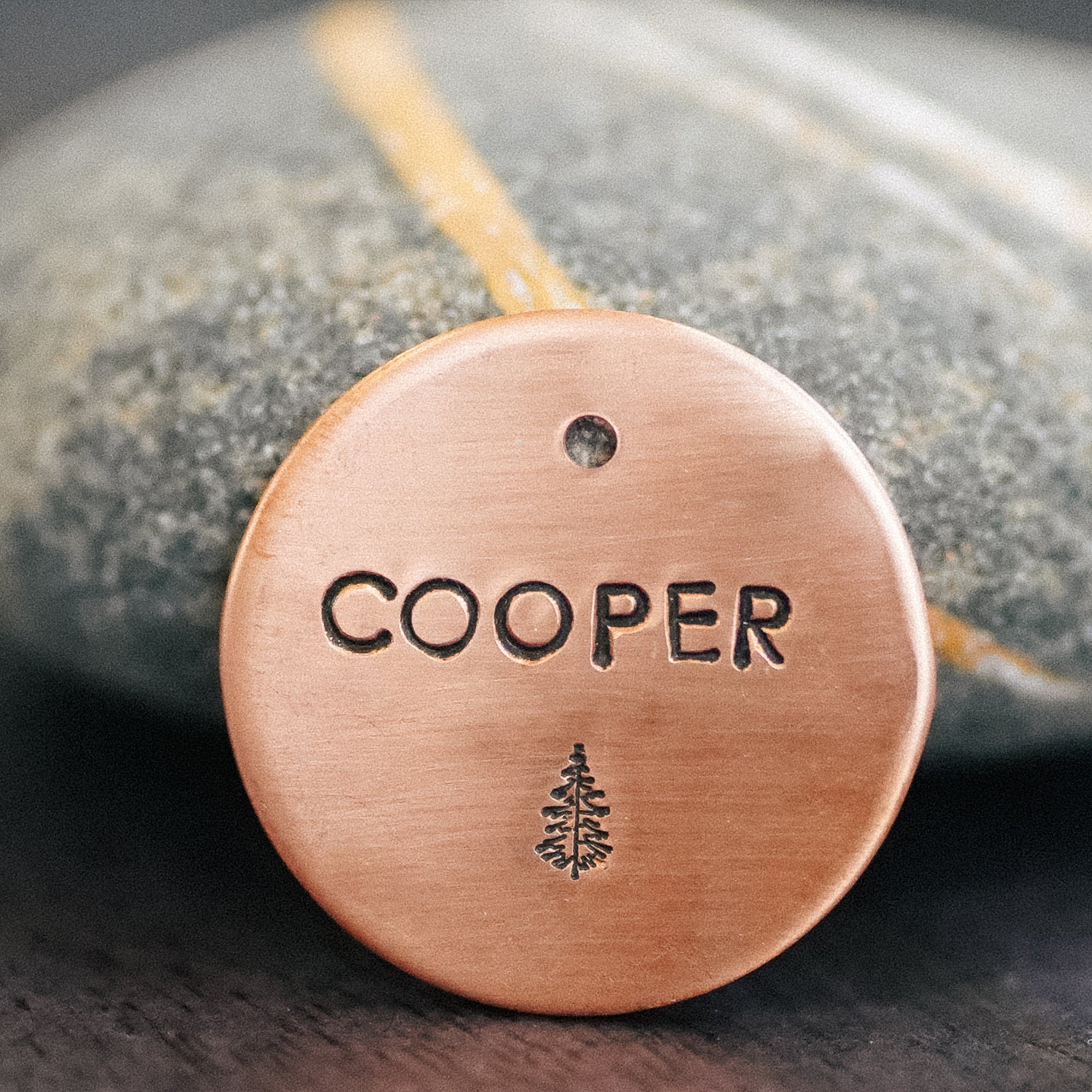 For the dog who’s always ready for an adventure. Our Pine tag is made for pups who love walks through the woods, hikes along trails, and sniffing out every new corner of the outdoors, a little piece of the wild wherever they go. This 1 ¼” tag is hand stamped on your choice of 14ga nickel, brass or copper. Each tag is hand stamped, made to order, and completely unique, no two are ever exactly the same.