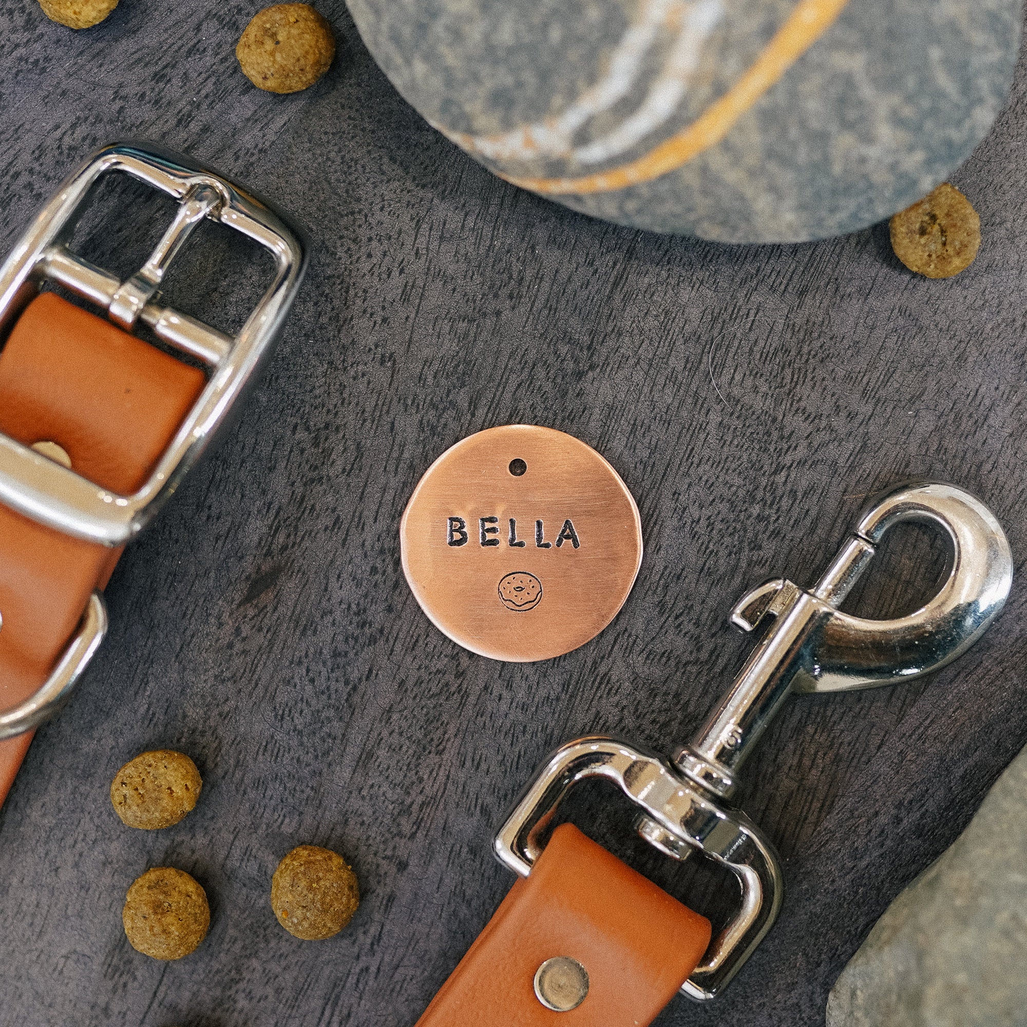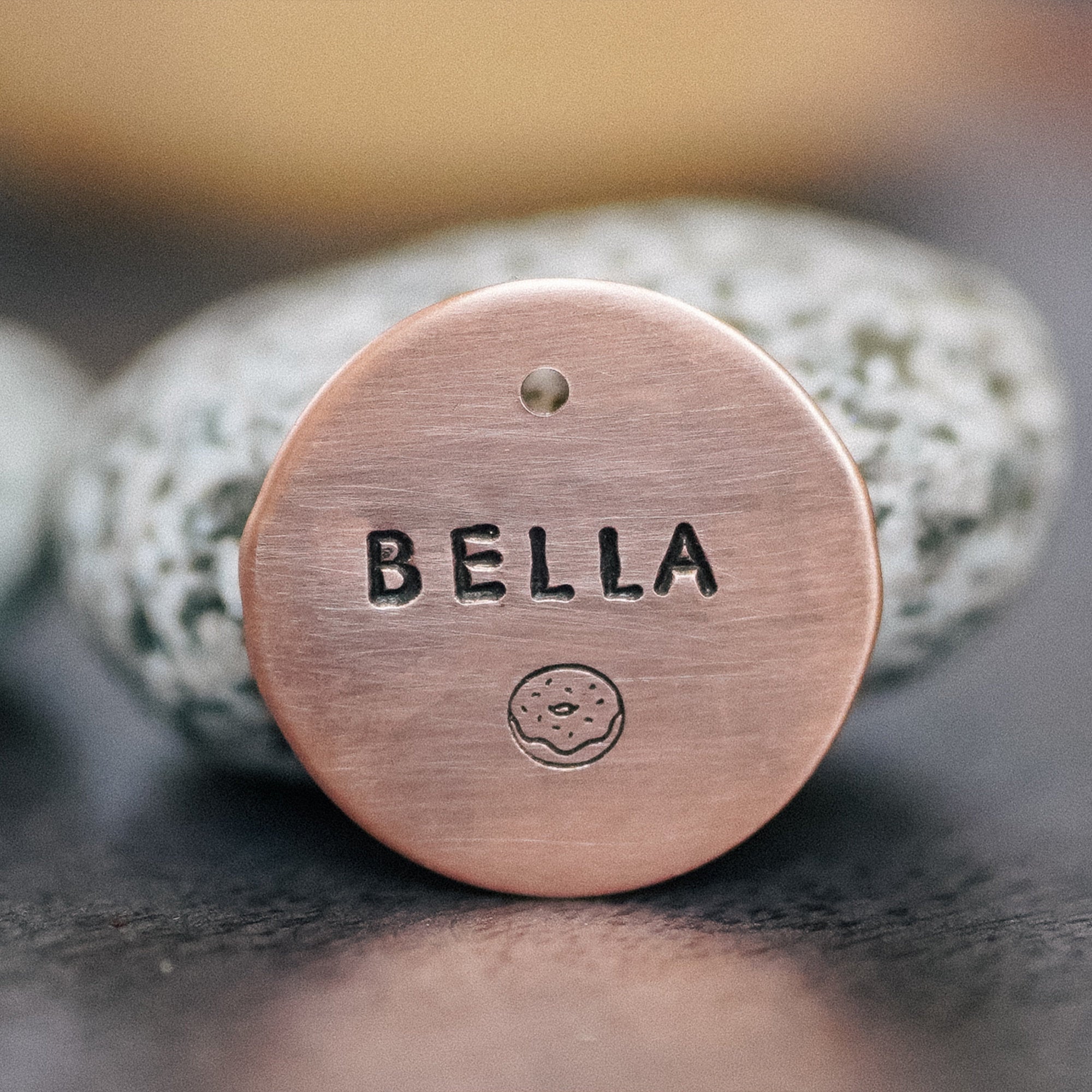 For the dog who lives for snack runs. Our Vanilla Dip tag is made for pups who would happily hop in the car for a drive-thru adventure to Tim Hortons! This 1 ¼” tag is hand stamped on your choice of 14ga nickel, brass or copper. Each tag is hand stamped, made to order, and completely unique, no two are ever exactly the same.